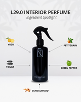 Level Twenty Nine L29.0 Interior Perfume brings a joyful blend of yuzu, vetiver, and sandalwood to your space in a 200ml bottle. Spritz and let the playful aroma refresh your surroundings with a lively twist.